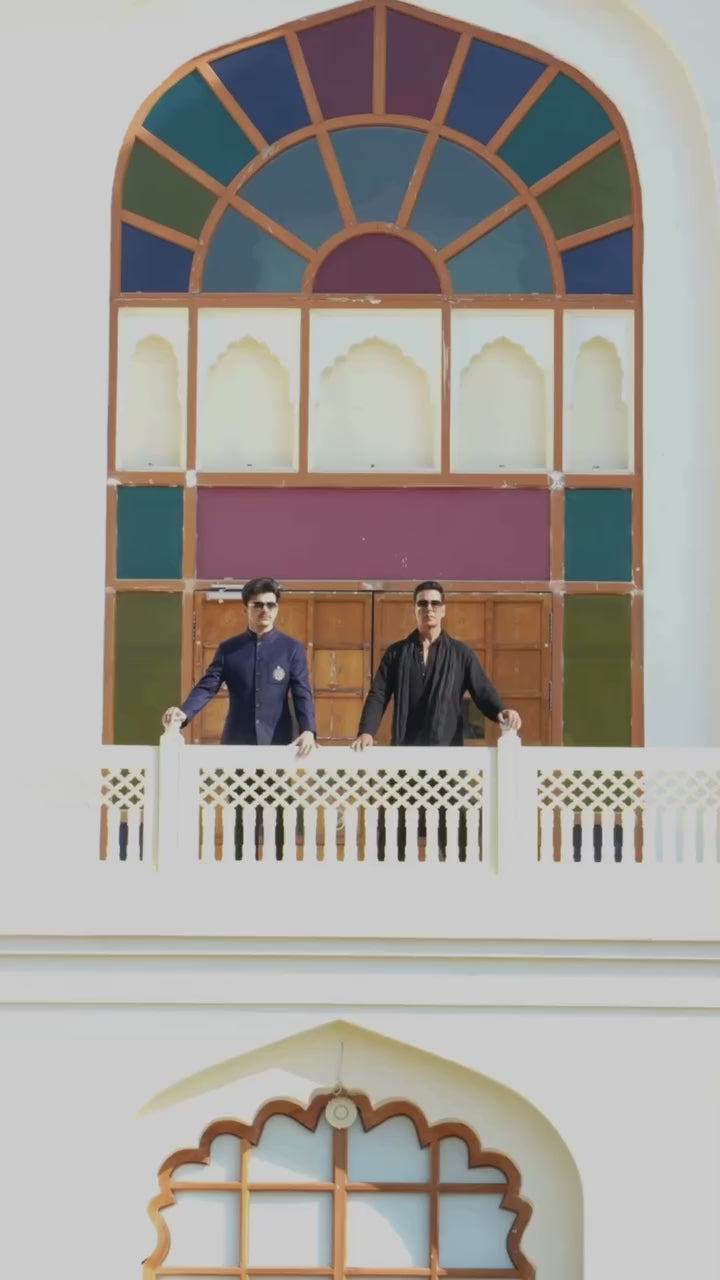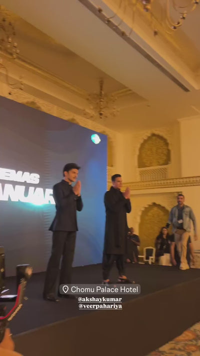 Featuring a charcoal black georgette chikankari kurta, crafted with intricate hand embroidery, paired with salwar. The look is completed with a matching crushed stole, adding texture and a touch of effortless sophistication.