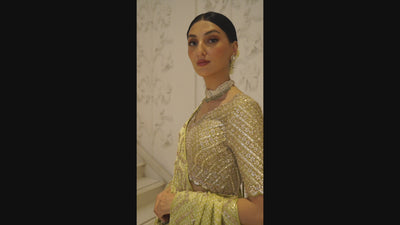 A graceful pista green lehenga adorned with intricate handcrafted Chikankari embroidery, paired with a vibrant Bandhani dupatta finished with traditional detailing. Elegant, artisanal, and perfect for weddings and festive celebrations.